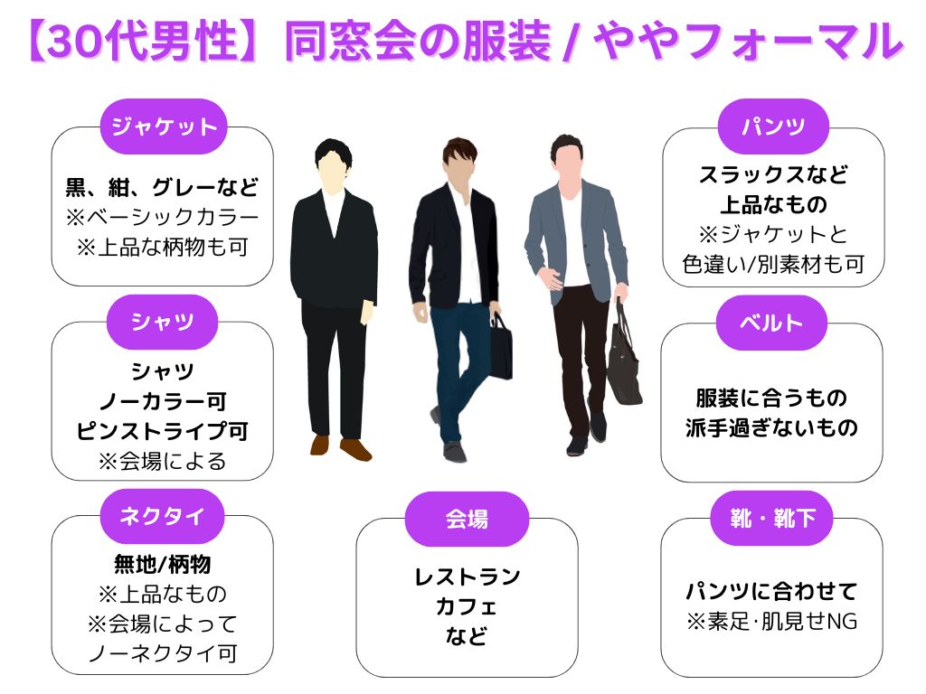 同窓会での30代男性の「ややフォーマル」な服装スタイル