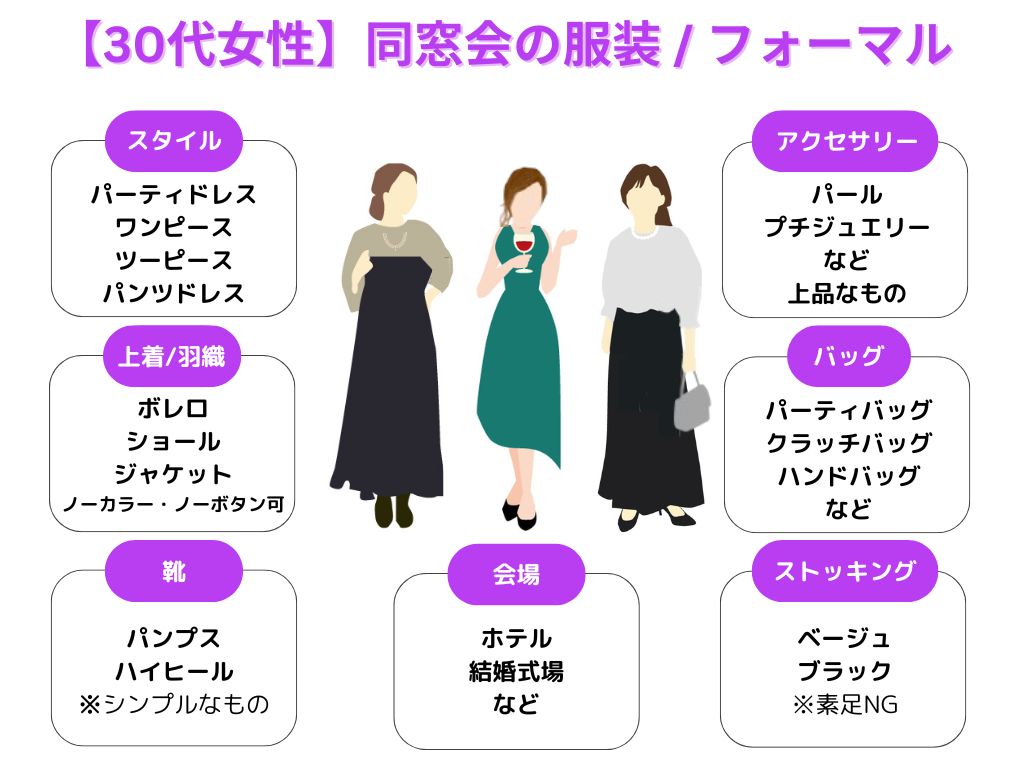 同窓会での30代女性の「フォーマル」な服装スタイル