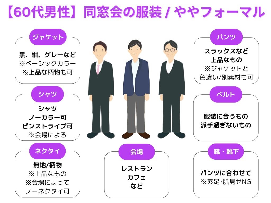 同窓会での60代男性の「フォーマル」な服装スタイル