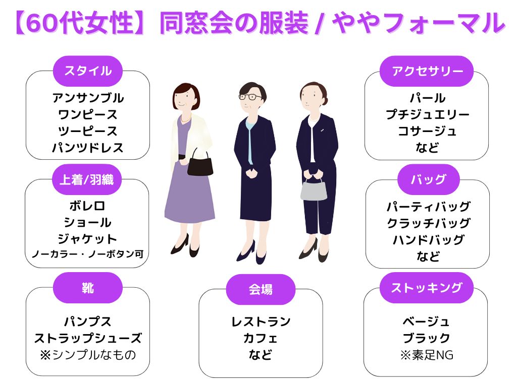 同窓会での60代女性の「フォーマル」な服装スタイル