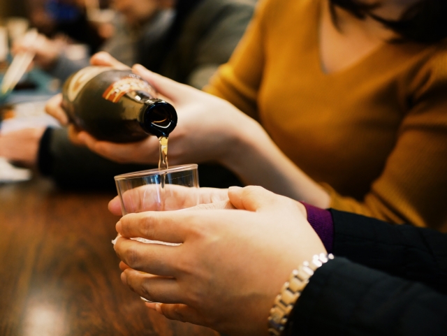 忘年会では、お酒を飲んで楽しむ参加者もいます。
