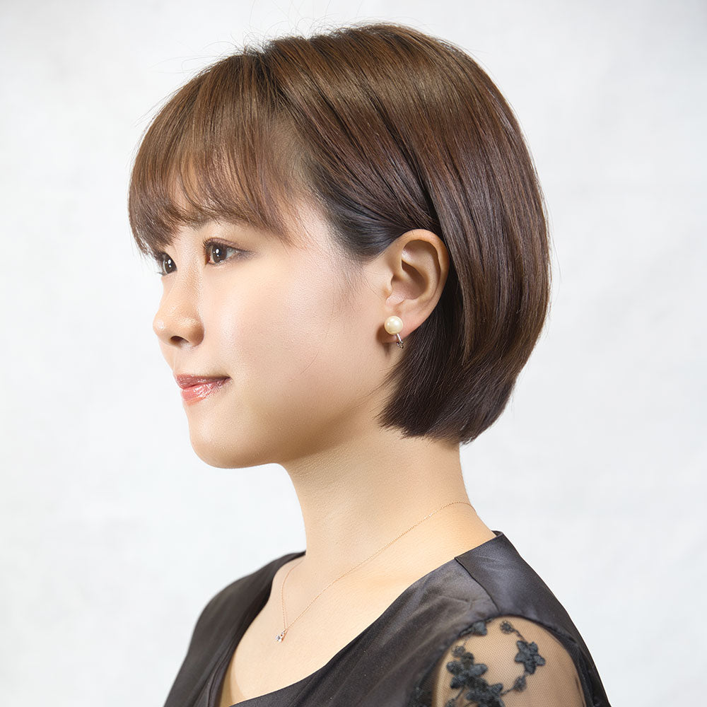 小ぶりなホワイトパールがベターです。ネックレスは必ずしも1連でなくていいですが、最も長いものが胸より上にくる長さが好ましいです。