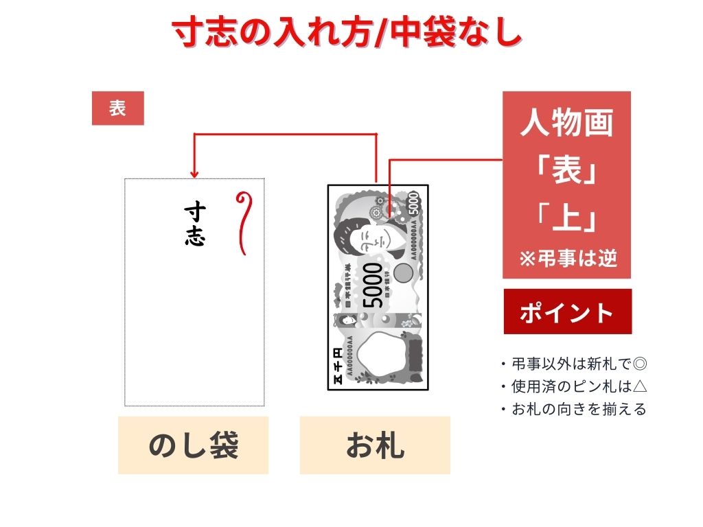 ここでは、寸志の入れ方について「中袋なし」と「中袋あり」に分けて紹介します。