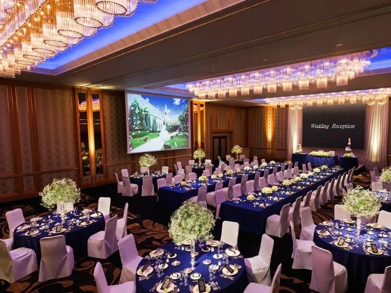 会場は分割利用もできるため、イベントの規模や内容に合わせた最適な空間を演出できます。最新の充実した設備が整っており、パーティーを華やかに彩る演出や、プレゼンテーションをより効果的に見せるためのサポート体制も万全です。記憶に残る特別なひとときを「ダイヤモンドボールルーム」で実現してください。