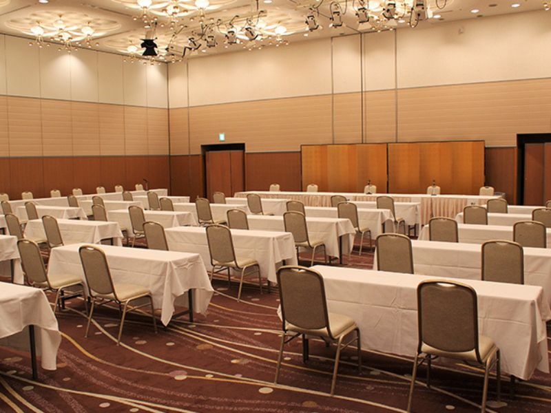 天井の高さ5.6m、広さ272平方メートルの大宴会場。多数の出席者が見込まれる、講演会やセミナーに適した会場です。
