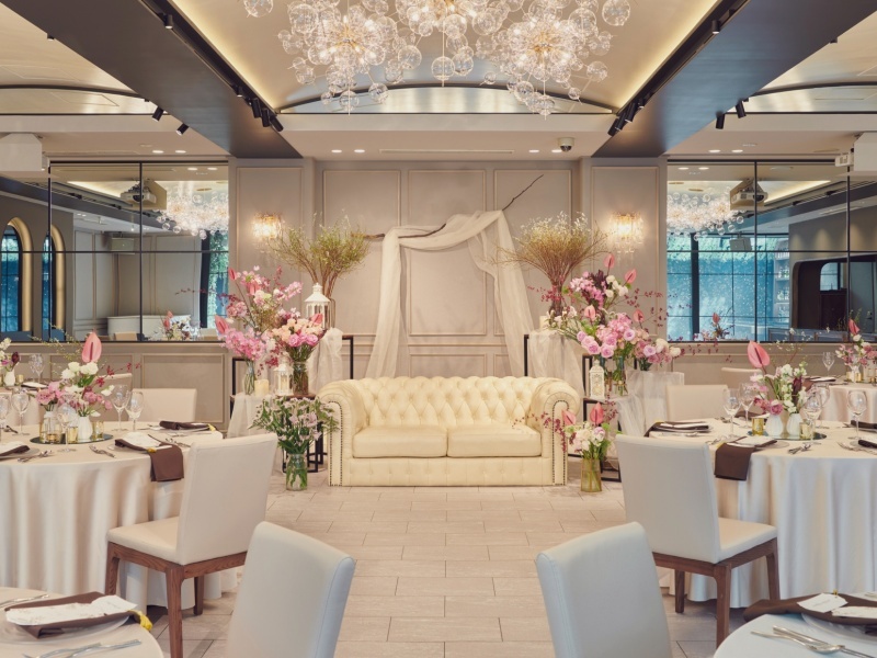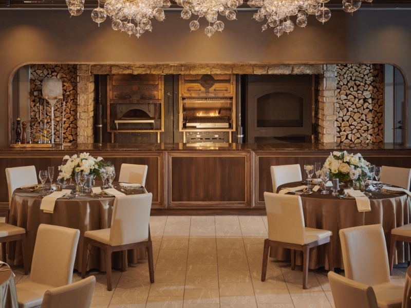 「グリル・ザ・プレイス」は、グレーや茶色を基調としたモダンなインテリアが魅力のレストラン会場です。北海道で初めて導入された石窯付きオープンカウンターを特徴とし、出来立ての美食でゲストをおもてなしいただけます。全天候型のガーデンテラスには、こだわりの美酒が並ぶバーカウンターも完備されており、開放的な空間で特別な時間をお過ごしいただけます。30名から86名までのパーティに対応し、少人数から中規模のイベントまで、食にこだわりたいお客様に最適な、上質で洗練された美食体験を提供する空間です。ライブ感あふれる調理パフォーマンスは、ゲストの記憶に残る宴を演出するでしょう。