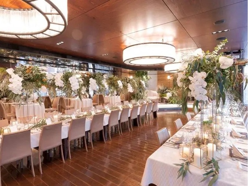 世界的デザイナー松中博之氏が手掛けた、「デザインとクオリティの融合」をテーマにしたグラマラスなバンケットです。イタリア産大理石やリアルウッド、高名な家具工房による上質な家具が贅沢に配され、洗練された雰囲気を醸し出しています。バーカウンターや絨毯には、調和や統合、幸せな家庭、愛情を象徴する六角形のモチーフが施されており、特別な日を彩る演出にも最適。レストランウェディングはもちろん、多様なイベントに対応します。エントランス、ブライズルーム、ゲストルーム、パティオ、厨房など、充実した付帯設備も魅力です。