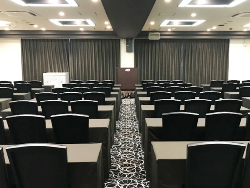 バンケット5Bは、広々とした175㎡の空間と天井高2.8mを備え、多種多様なイベントに対応する柔軟な会場です。シアター形式で最大198名、スクール形式で156名、立食では130名まで収容可能。会議、セミナー、研修はもちろん、懇親会やパーティーにも最適です。JR大阪駅からわずか2駅、乗車時間4分という抜群のアクセスも魅力。ホテル併設のため、宿泊を伴うイベントにも便利にご利用いただけます。用途に応じて自由にレイアウトを組めるため、お客様のニーズに合わせた最適な空間を演出します。中規模のイベントに最適なバンケット5Bで、成功に導くひとときをお過ごしください。