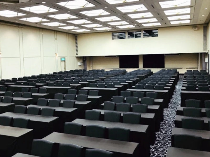 TKPガーデンシティ大阪リバーサイドホテルの最上階に位置する「バンケット6A」は、広々とした400㎡の空間と開放感あふれる5mの天井高が魅力です。JR大阪駅から2駅・乗車時間4分というアクセス抜群の立地も強み。最大414名収容可能なシアター形式をはじめ、スクール345名、立食280名、着席144名など、多様なレイアウトに対応可能です。大規模な会議、セミナー、展示会、華やかなパーティーや懇親会まで、あらゆるイベントに最適なフレキシブルな対応力を誇ります。スタッフ常駐、バリアフリー対応、高速ネット回線完備、早朝・深夜利用も可能で、お客様の多様なニーズに応える最高の環境を提供します。
