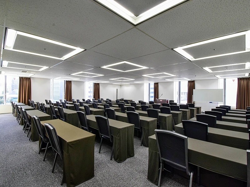 新大阪駅から徒歩5分とアクセス抜群の「ホール4B」は、143.81㎡の広さと2.5mの天井高を誇る多目的スペースです。スクール形式で117名、シアター形式で140名、立食形式で80名、島型で114名など、多様なレイアウトに対応し、会議、セミナー、研修、懇親会まで幅広い用途でご利用いただけます。必要な備品やケータリングサービスも充実しており、イベントの準備から運営まで一貫してサポートいたします。早朝・深夜の利用も可能で、お客様の細やかなニーズに応える柔軟性も魅力です。