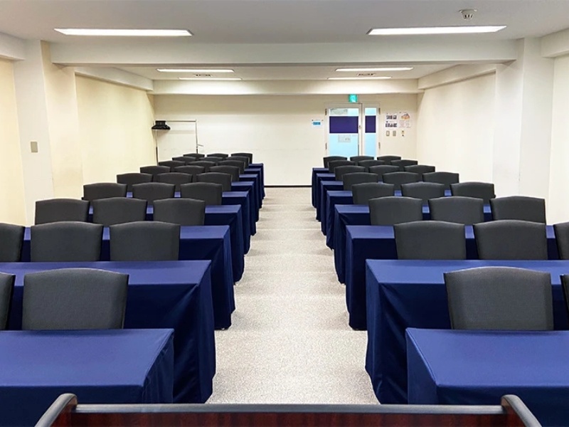 カンファレンスルーム4Aは、76㎡の広々とした空間と2.5mの天井高を備え、多様なビジネスシーンに対応する会議室です。スクール形式で51名、シアター形式で64名、立食形式で40名まで収容可能。島型、口の字、コの字、正餐など、様々なレイアウトにも柔軟に対応し、会議や研修、セミナー、懇親会など幅広い用途でご利用いただけます。JR新大阪駅から徒歩5分という抜群のアクセスと、経験豊富なスタッフによるきめ細やかなサポートも魅力。リーズナブルな料金設定で、質の高いビジネス環境をご提供し、お客様のイベントを成功に導きます。