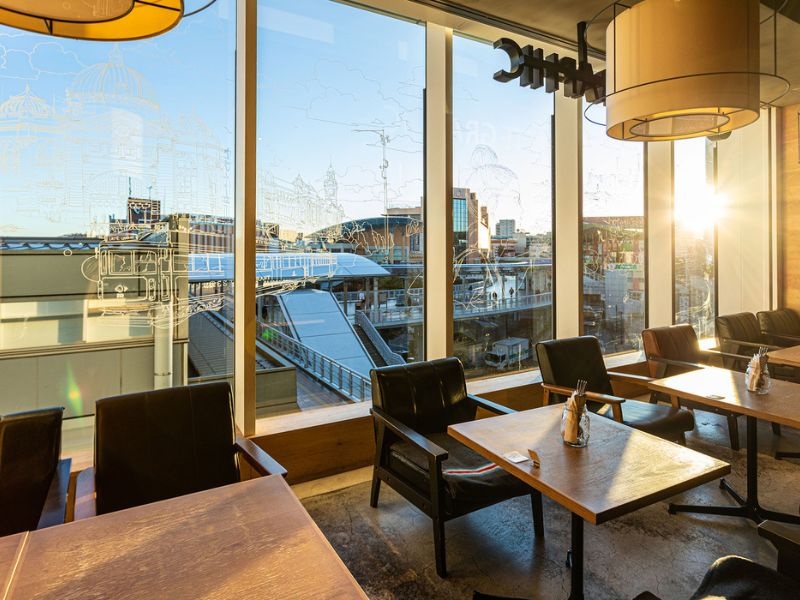 海老名駅直結、徒歩1分の「LATTE GRAPHIC 海老名店」は、洗練されたデザイナーズ空間で会議やイベントが可能です。無料Wi-Fiや電源を完備し、開放的なガラス張りの窓からは景色も楽しめます。最大約60名様まで貸切もでき、本格ステーキ等の料理も充実。ビジネスの合間のランチや懇親会にも最適です。