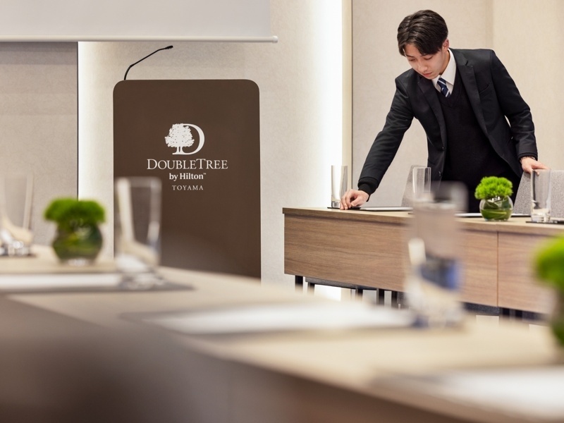 ダブルツリーbyヒルトン富山は、会議、セミナー、ビジネス研修に最適な環境を提供します。お客様の様々なご要望にお応えし、経験豊富なスタッフが計画段階から実施までお手伝いいたします。有線・無線インターネットアクセスを完備した各宴会場は、スタイリッシュで柔軟性の高い空間で、多様な用途に応えいたします。ハイブリッドなオンライン会議、研修やセミナーなど10名様~45名様までの小中規模の会合向けに最適です。