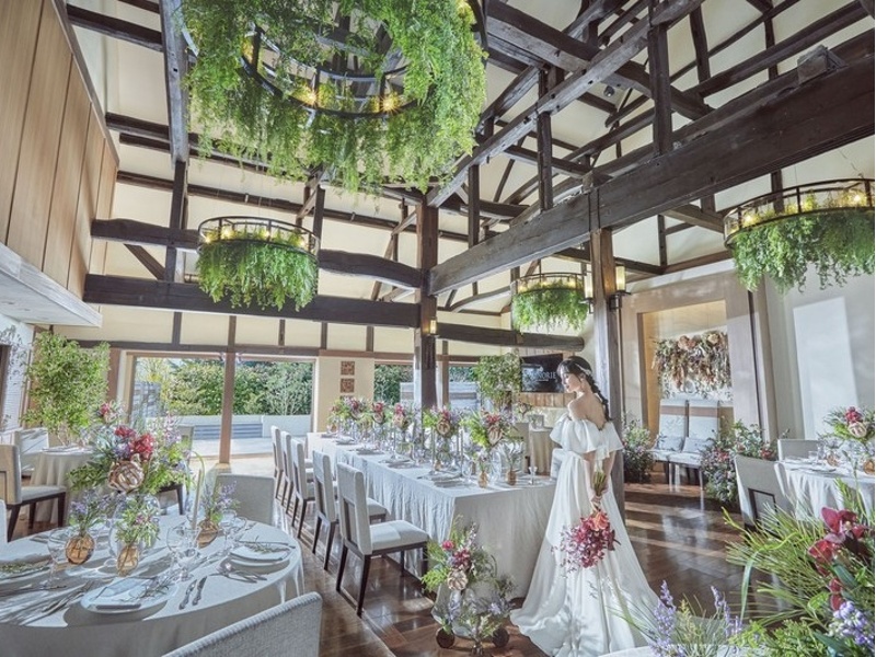 独特な梁が醸す日本家屋らしい雰囲気と、ホテルのような上質な設えが融合した唯一無二のパーティ会場です。自然光に満たされ、木の温もりに包まれた心地よい空間では、ゲストと心ゆくまで寛ぎ、楽しいひと時を満喫できます。古民家を一軒丸ごと貸し切り、30名から58名規模のアットホームなパーティーに最適。開始時間やプログラムも思いのままにアレンジ可能です。会場内のオープンキッチンからは、福島県産にこだわった旬の食材を用いた地産地消の絶品料理ができたてで提供され、専属パティシエによるデザートもパーティーを一層華やかに彩ります。大切な方々と笑顔あふれる時間を過ごしたい方に最適な空間です。