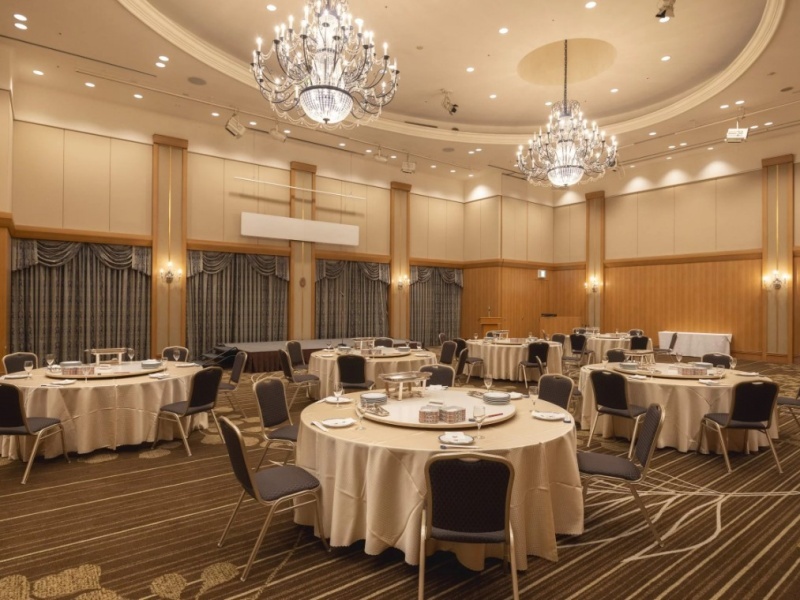いわきワシントンホテルの3階に位置する大宴会場『アゼリア』は、883平米もの広さと、開放感あふれる6.4mの天井高を誇る、いわき市で最大級の規模を誇る会場です。この広大な空間は、全体利用の「A+B+C」をはじめ、「アゼリアA」「アゼリアB」「アゼリアC」といった柔軟な分割利用も可能。大規模な国際会議、展示会、セミナー、盛大な祝宴など、あらゆるイベントニーズにきめ細やかに対応いたします。壮大なスケールと自由な設営で、参加者の記憶に残る特別なひとときを演出する理想的な会場です。