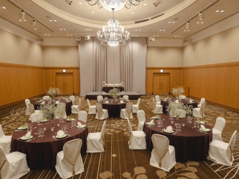 いわきワシントンホテルの3階に位置する大宴会場『アゼリア』は、883平米もの広さと、開放感あふれる6.4mの天井高を誇る、いわき市で最大級の規模を誇る会場です。この広大な空間は、全体利用の「A+B+C」をはじめ、「アゼリアA」「アゼリアB」「アゼリアC」といった柔軟な分割利用も可能。大規模な国際会議、展示会、セミナー、盛大な祝宴など、あらゆるイベントニーズにきめ細やかに対応いたします。壮大なスケールと自由な設営で、参加者の記憶に残る特別なひとときを演出する理想的な会場です。