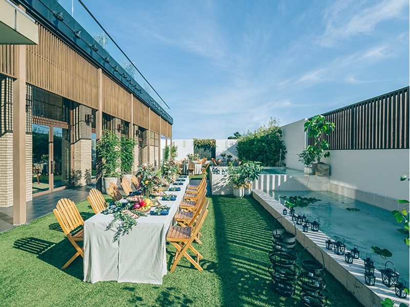 アマンダンテラスが提供する屋外スペース「ガーデン」は、103㎡の広さを誇る開放的な空間です。施設全体の洗練された美しさを背景に、イベントに特別な趣を加えます。会議やセミナーの合間のリフレッシュ、交流の場、または屋外での特別な演出など、多様なシーンでの活用が可能です。具体的な収容人数の記載はありませんが、広々としたこの庭園は、ゲストに非日常的な体験と豊かな緑に囲まれた心地よい時間を提供します。