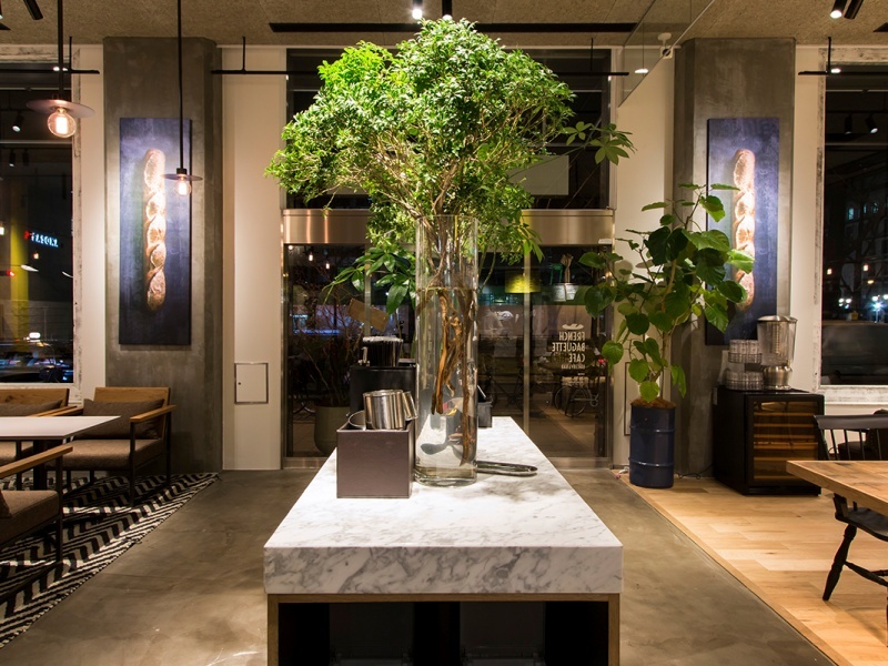 大阪御堂筋沿いに佇む「フレンチ バゲット カフェ」の貸切プランは、開放感あふれる空間で特別なひとときを演出します。結婚式の二次会や企業パーティー、各種イベントなど、幅広いシーンでご利用いただけます。最大で着席60名様、立食110名様まで収容可能で、マイクやプロジェクターといった設備も無料でご利用いただけます。お客様の人数や用途に合わせて、テーブルレイアウトを柔軟に変更できるため、思い通りのパーティーやイベントが実現可能です。洗練された雰囲気の中で、記憶に残る一日をお過ごしください。