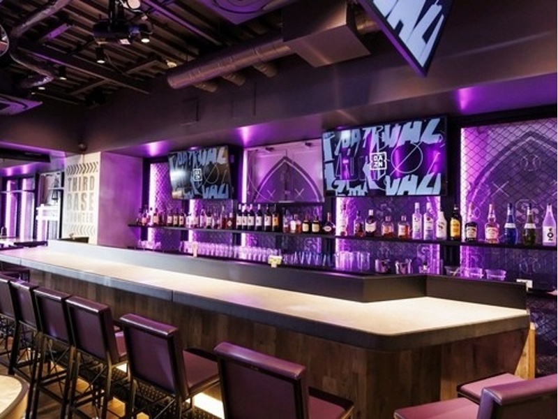 STADIUM BAR 秋葉リーグは、秋葉原駅から徒歩20秒の好立地に位置する、まるで本物のスタジアムのような臨場感を味わえる大型スポーツバーです。最大80席の広々とした店内には、10台の大型モニターと巨大スクリーンが完備されており、どの席からも大迫力のスポーツ観戦をお楽しみいただけます。ビアガールが注ぐ冷えたビールを片手に、熱気あふれる空間で仲間と盛り上がる体験は格別です。手作りのホットドッグなど、ビールと相性抜群のフードメニューも充実。会社の宴会や友人との飲み会に最適なコースプランもご用意しており、着席30名、立食150名までの団体利用や貸し切りパーティーにも対応可能です。個室やカップルシート、カウンター席、ソファー席など、多様なシートタイプがあり、お一人様から大人数まで幅広いシーンでご利用いただけます。プロジェクターや無料Wi-Fiも完備されており、快適な時間を過ごせます。非日常的な空間で忘れられないイベントやパーティーを開催したい方にぴったりの会場です。