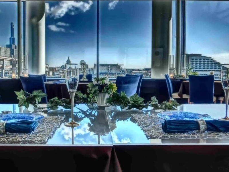 全席オーシャンビューの開放的な空間で、神戸が誇る1000万ドルの夜景を独り占めできる貸切会場です。見通しが良く落ち着いた雰囲気の中で、会社の宴会から気の合う仲間とのパーティーまで、幅広いシーンでご利用いただけます。窓一面に広がる絵画のような美しい眺望は、特別なひとときを演出します。音響機器、マイク、プロジェクター、DVDプレイヤー、楽器など充実した設備に加え、控え室、クロークも完備。コンパニオンや装花、ケーキの手配も可能で、あらゆるイベントニーズに対応し、忘れられない体験をプロデュースします。