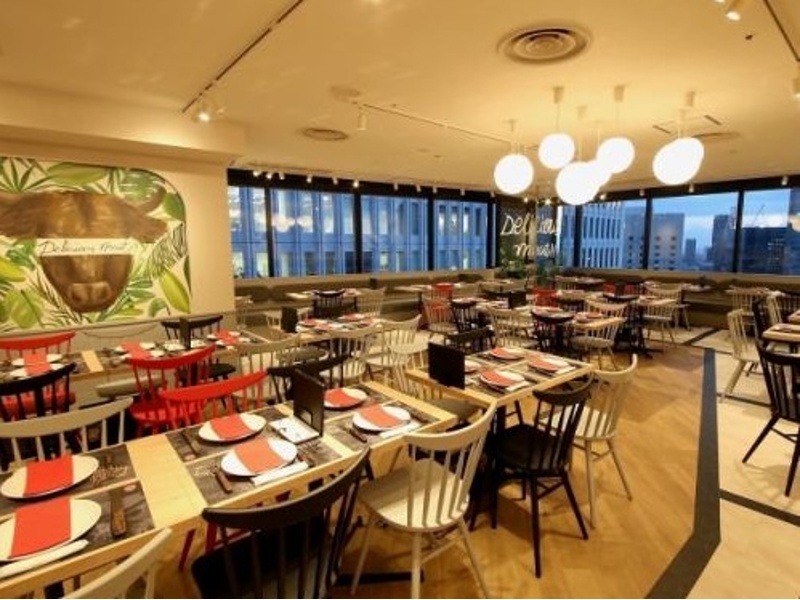 阪急グランドビル29階に位置する「ALEGRIA umeda」は、大阪の絶景を眼下に望むシュラスコレストランです。ディナータイムにはきらめく夜景、ランチタイムには開放的な景色が広がり、特別なひとときを演出します。店内はカジュアルながらも、有名デザイナーによる牛のアートが彩るフォトジェニックな空間。最大72名様までの着席に対応可能で、ご家族でのご利用から、忘年会や結婚式二次会などの大人数での貸切パーティーまで幅広く対応できます。4名様から利用できる個室も完備しており、プライベートな会食や記念日デートにも最適。20種類以上の本格シュラスコ食べ放題に加え、80種類以上の豊富なドリンクメニューや4種のビアサーバーも魅力です。誕生日や記念日にはサプライズのデザートプレートもご用意可能で、忘れられない思い出作りをサポートします。絶品シュラスコと共に、都会のパノラマビューを心ゆくまでお楽しみください。