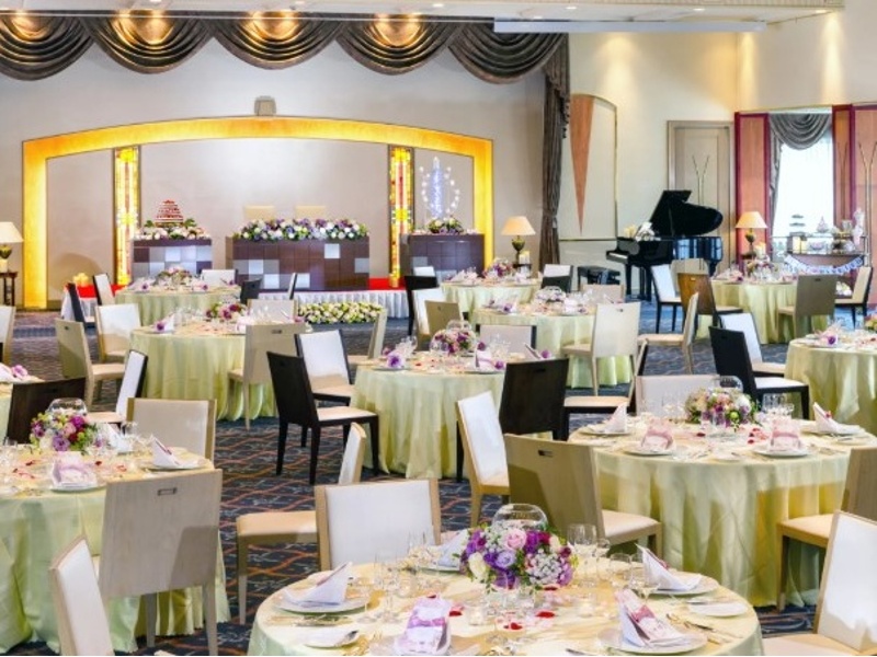 鹿鳴館時代の迎賓館をモチーフにした、格調高いクラシカルバンケットです。天井を華やかに彩るシャンデリアと、開放感あふれる大きな窓が空間に上質な輝きをもたらし、祝賀会や式典にふさわしい特別感を演出します。正餐54〜96名、スクール84〜120名、シアター147〜231名と多彩なレイアウトに対応し、新年会・忘年会・同窓会・歓送迎会から企業セミナー・展示会まで、幅広い規模と目的のご利用が可能です。プロジェクターやスクリーンなどの設備も充実。ウエディングシェフが手がけるフレンチコースから会席・松花堂・幕ノ内まで、お料理もご希望に合わせてご提案いたします。