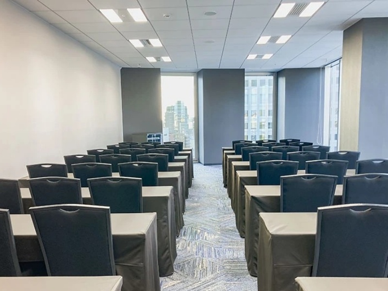 「カンファレンスルーム11C」は、75.4㎡の広さと2.8mの天井高を持つ、多様なレイアウトに対応可能な会場です。スクール形式で51名、シアター形式で最大68名まで収容でき、会議やセミナー、研修など幅広い用途にご利用いただけます。機能性と快適さを兼ね備えた空間で、参加者にとって集中しやすい環境を提供します。