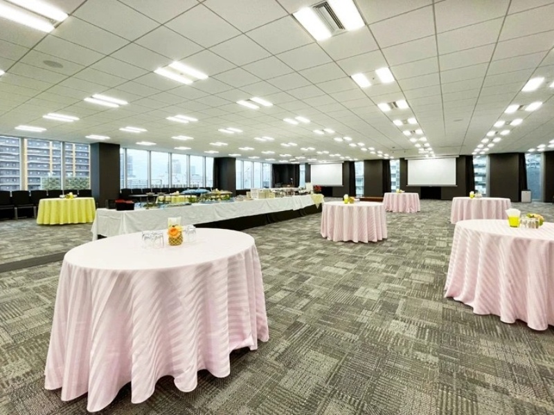 TKPガーデンシティPREMIUM大阪梅田新道に位置する「ホール11E」は、504.36㎡の広々とした空間を誇り、最大592名収容可能な大規模ホールです。シアター形式での講演会やセミナー、スクール形式の研修、立食パーティーなど、多岐にわたるイベントに対応します。梅田の主要駅から徒歩5分以内の好立地でアクセス抜群、参加者の利便性を確保します。高速インターネット回線や搬入用エレベーターを完備し、大規模な展示会やイベントでもスムーズな運営をサポート。デザイン性にも優れ、快適な環境で集中できる空間を提供します。パーティー・宴会も可能で、イベント後の懇親会も同一会場でスムーズに開催いただけます。スタッフが常駐し、お客様のイベント成功を全面的にサポート。早朝・深夜利用にも対応しており、柔軟な時間設定が可能です。大規模イベントに最適な多機能ホールとして、貴社の重要なイベントを成功に導きます。