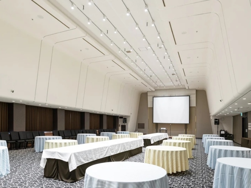 TKPガーデンシティ大阪淀屋橋のバンケット19Aは、19階に位置し、開放感あふれる天井高6mの広々とした空間が魅力です。最大340名収容可能なシアター形式をはじめ、立食200名、スクール264名、正餐108名、コの字75名、口の字90名、島型216名といった多様なレイアウトに対応し、大規模な研修、セミナー、懇親会はもちろん、ゲストを招いての式典や株主総会など、様々なイベントに最適な環境を提供します。面積は290.37m²を誇り、広々とした空間でゆったりとご利用いただけます。会場には専用ミーティングルームも併設されており、イベント前後の打ち合わせや控室としても便利です。駅徒歩5分以内という好立地に加え、スタッフ常駐、バリアフリー対応、搬入用エレベーター完備、早朝・深夜利用可能といった充実したサービスと設備で、お客様のイベントを強力にサポートします。洗練された空間で、記憶に残る特別な一日を演出するのにふさわしい会場です。