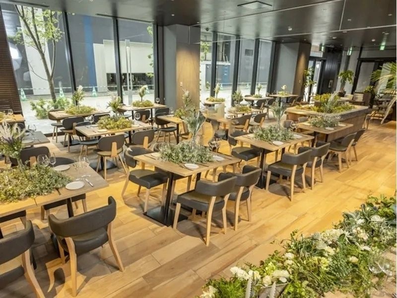 2023年3月にグランドオープンしたばかりの「ホテル京阪なんばグランデ」内レストランです。なんば駅徒歩4分という抜群のアクセスを誇り、遠方からのゲストも安心。ホテル併設ならではの充実した音響・映像設備やドレスレンタルサービスなど、ハイクオリティな設備が魅力です。ワンフロア見渡せる開放的でお洒落な空間は、ゲスト全員が一体感を共有できるアットホームなパーティーに最適。地元関西の新鮮野菜をふんだんに使用した、目にも美しいエシカル&フォトジェニックなイタリアンをご提供。ピンチョス、クロスティーニ、芳醇な肉料理、自慢のパスタなど、五感を刺激する逸品が揃います。