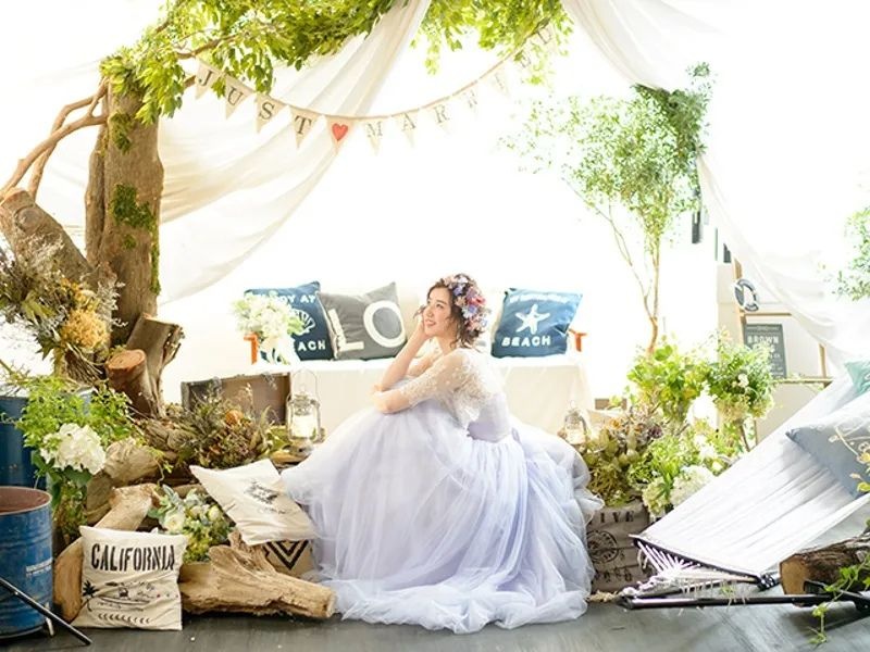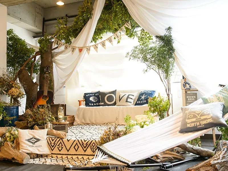 「アウトドア」「グランピング」「ナチュラル」など、トレンドをギュッと詰め込んだパーティースペース。白を基調とする空間はアメリカ西海岸・カリフォルニアをイメージしており、明るくて開放感たっぷり。