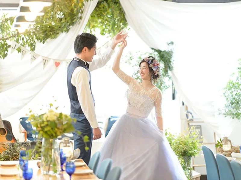 カリフォルニアの西海岸をイメージした明るいリゾート空間★「アウトドア」「グランピング」「ナチュラル」など、トレンドをギュッと詰め込んだパーティースペース。白を基調とする空間はアメリカ西海岸・カリフォルニアをイメージしており、明るくて開放感たっぷり。大きな窓から燦々と降り注ぐ自然光に包まれながら、アットホームなパーティーを楽しめる。すべてデザイナーズ家具で統一されており、特別な1日をよりスタイリッシュに演出する。