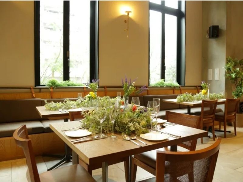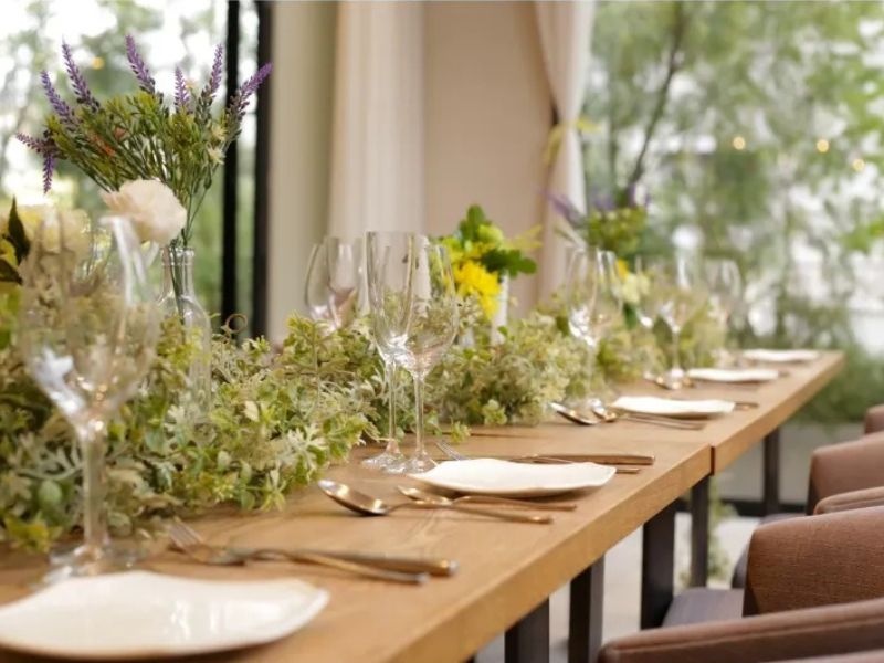 いたるところに配されたグリーンがボタニカルな雰囲気を演出し、会場内のどこで写真をとってもSNS映えすること間違いなし。お気に入りのお花や緑で飾れば、オリジナリティ溢れる特別な空間づくりも可能。