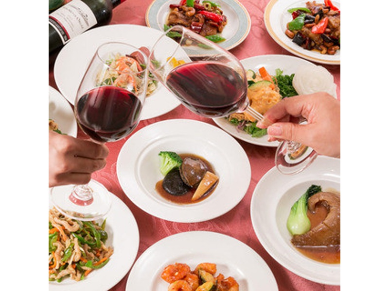 【ランチ限定・大人気の胡麻揚げ付】|同窓会・女子会|個室も選べる!海鮮料理、牛肉料理、絶品ふかひれスープなど全7品+乾杯グラスワイン!5,830円 ⇒ 4,800円(税込)