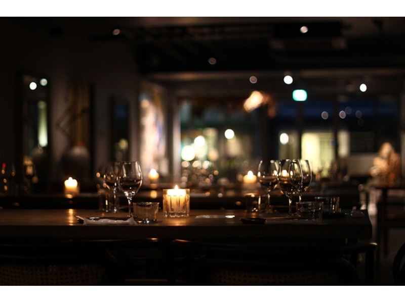 落ち着いた照明とアートが調和するダイニングフロア。貸切利用で一体感のあるパーティーや懇親会を演出可能です。