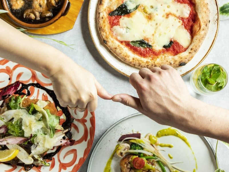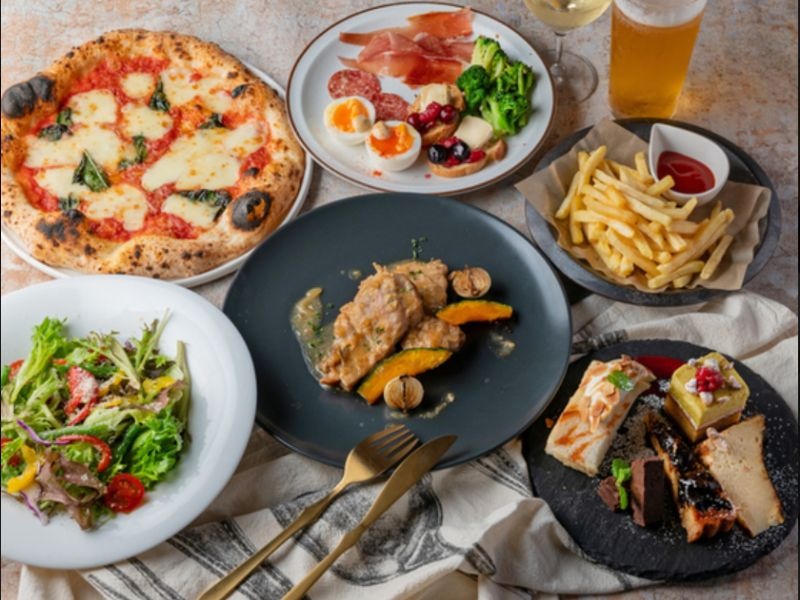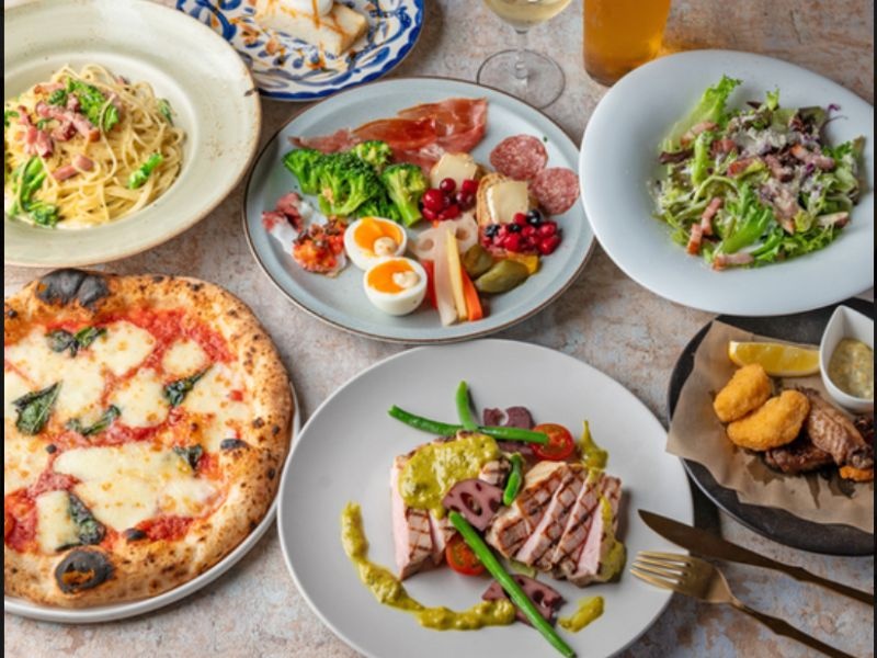 南海なんば駅直結、なんばパークス2Fの好アクセスなイタリアン。プロジェクターや音響機材完備で、カーテン個室や開放的なテラス席も備えます。貸切は30名から最大150名まで対応。懇親会や歓送迎会、同窓会、忘新年会など、多彩なパーティーに最適です。施設内駐車場の優待もあり便利です。