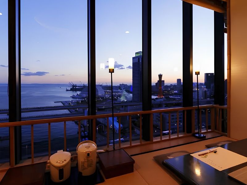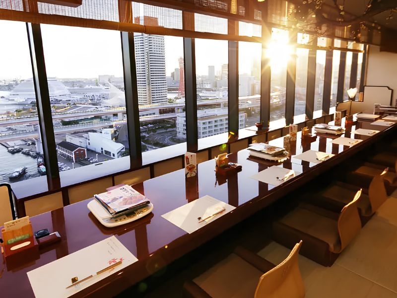 シップ神戸海岸ビル15Fに位置する「梅の花 神戸元町店」は、神戸港の絶景を望む最高のロケーションで、湯葉と豆腐の創作懐石を楽しめる和食店です。完全個室を完備し、名物のとうふしゅうまい等の逸品が宴席を彩ります。歓送迎会や忘新年会、接待など、夜景が演出する特別なひとときをご堪能ください。