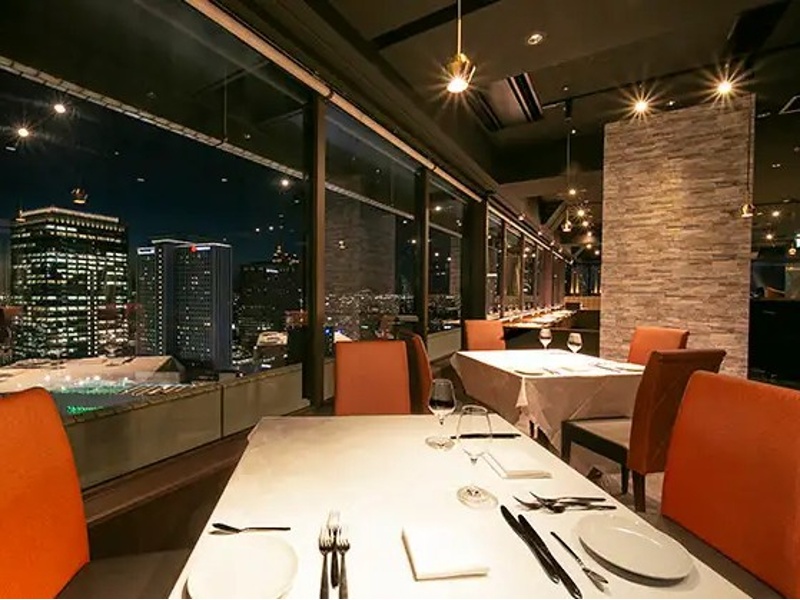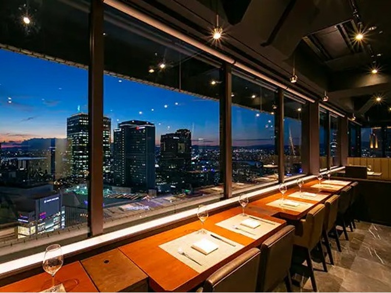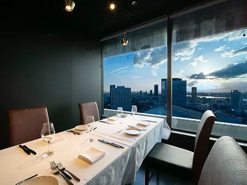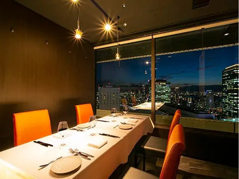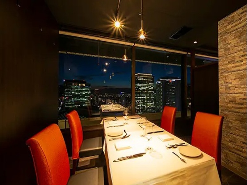 阪急グランドビル31F、地上120mからの壮大な夜景が魅力のイタリアンレストランです。記念日や特別な日の宴会、パーティーに最適な個室確約コースをご用意。個室は2名~8名様まで利用可能で、大切なゲストのおもてなしに最適です。全席から夜景が広がる空間で、厳選黒毛和牛メニューをお楽しみいただけます。