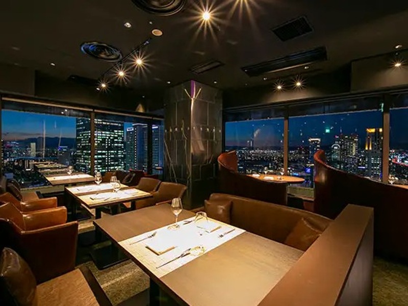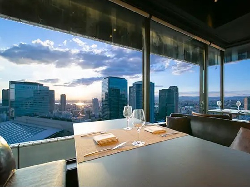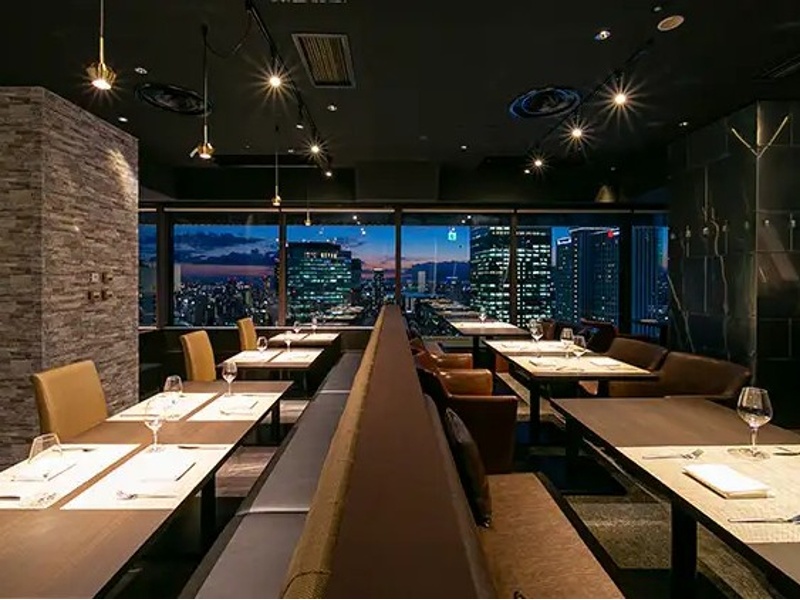 店内には多彩な席タイプがあり、いずれも眺望とプライベート感を重視した設計が魅力です。中央のベンチシート席は高い背もたれで半個室のような落ち着きを生み、可動式テーブルにより1〜6名まで柔軟に利用できます。高層階の景色を楽しめるカフェシート席は革張りソファでゆったり過ごせ、カジュアルな食事会から静かな作業時間まで幅広く対応。半円状の背もたれを備えたソファシートは記念日利用に最適で、2〜3名で絶景を楽しめます。大阪駅を一望できるカウンター席は最も窓に近い特等席で、移りゆく空や夜景を堪能でき、1〜2名の特別な時間にぴったりです。テーブル席は格式ある雰囲気で、記念日や家族のお祝いに最適。席を繋げればパーティーにも対応します。さらに唯一の個室は接待など大切な場面にふさわしい完全プライベート空間です。全席禁煙で、どのシーンでも快適に過ごせます。