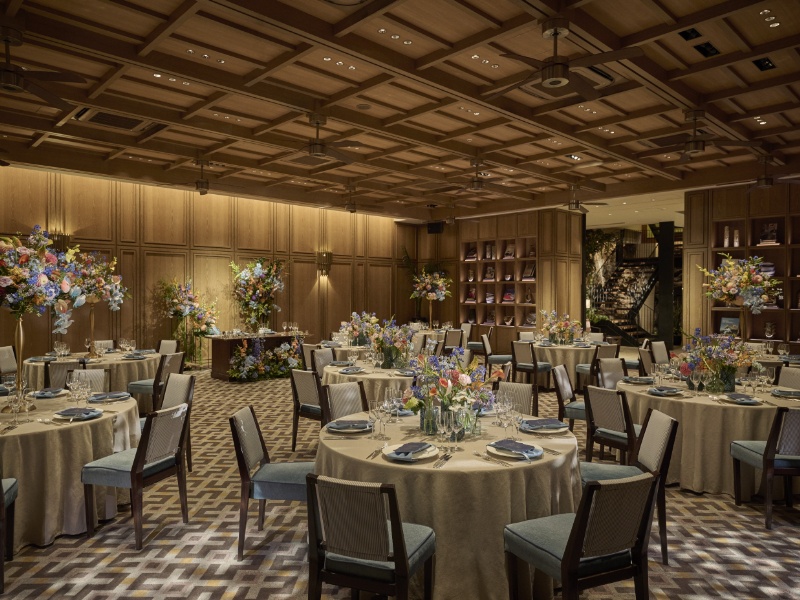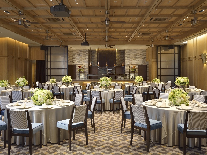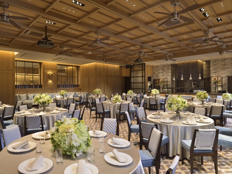 響き渡る滝の水音と照明の柔らかさが印象的な「ブエノス コート」は、地下1階にありながら天井高4 メートルもの開放的な空間。お食事会からセミナーまで使用目的に合わせてアレンジできる会場です。