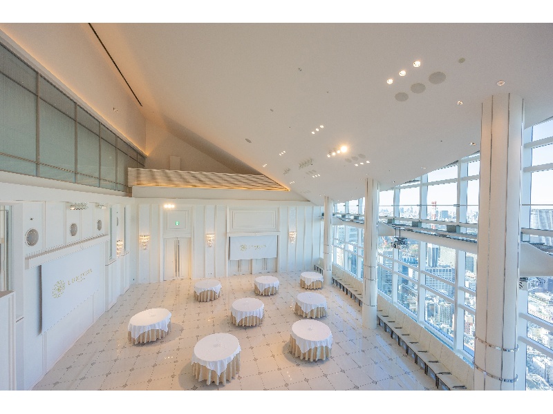41階42階吹き抜けの会場:階段から入場などの結婚式で人気の演出はご宴席でも可能です。