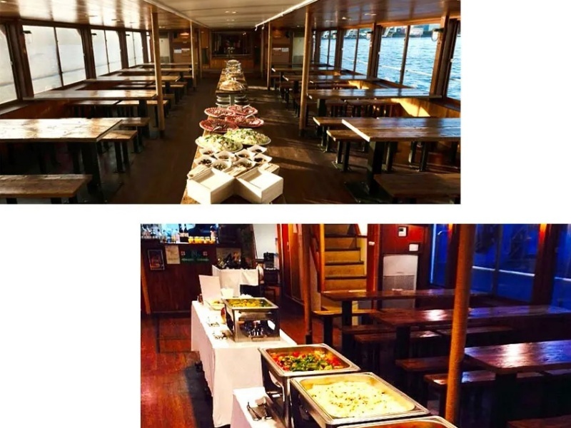 「フロンティアルーツ」は、ハワイアン風の心地よいインテリアが特徴のクルーズ船です。開放感のある大きな窓からは東京や横浜・川崎工場の美しい景色を存分にお楽しみいただけます。乗船定員120名、屋根下最大人数も120名と余裕のある空間で、特にワンフロアに全員着席するスタイルのパーティーに最適です。一体感のあるイベントや懇親会、特別な記念日のお祝いなど、様々なシーンで忘れられないひとときを演出します。中型船から大型船の利用をご検討の方に、景色と共に特別な空間を提供する「フロンティアルーツ」は理想的な選択となるでしょう。