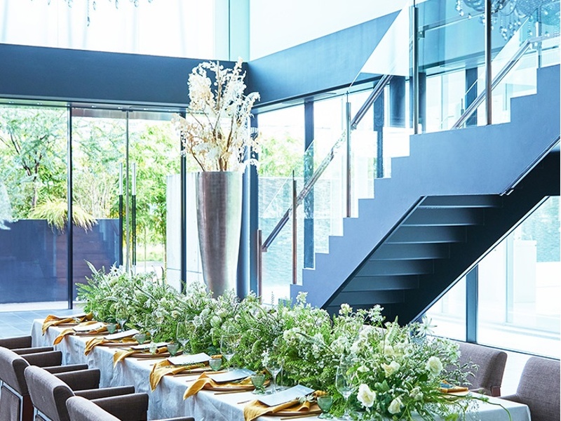 宇都宮モノリスのダイニングは、水・光・緑がとけこむ洗練された空間で、特別な時間を提供します。274m²の広々としたスペースと8mの開放的な天井高が特徴で、立食で220名、着席で160名、スクール形式で160名、シアター形式で200名まで収容可能。大規模な会議、セミナー、各種パーティに柔軟に対応します。iPod接続対応や無線LAN完備など、現代のイベントに必要な設備も充実。さらに、寿司ビュッフェや炭火焼グリルといった豊富な食事オプションに加え、プロジェクター、ピアノ、生演奏、花火演出など、多彩な演出アイテムもご用意しており、お客様の特別なシーンをより魅力的に彩ります。様々な目的で利用できるこの会場は、ゲストに深い印象を残すことでしょう。