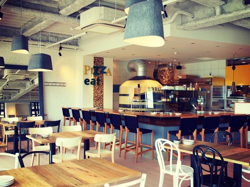 室内には、ゆったりとくつろげるテーブル席をはじめ、心地よい風を感じられるテラス席、活気あふれるピザ窯前のカウンター席、そしてプライベート感を保てる美しい格子模様のセミ個室も完備しています。