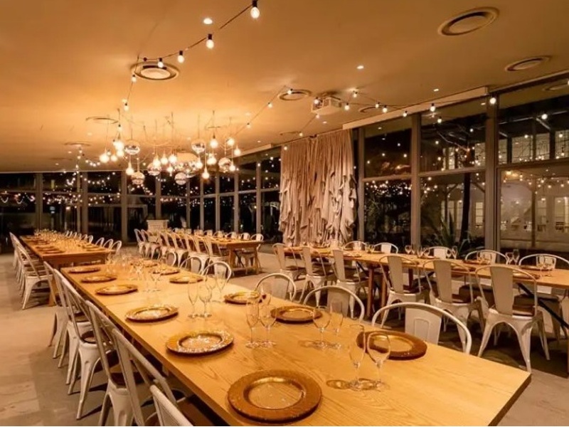 「PARTY SPACE」は、50名様から最大200名様までの大規模パーティーに最適なラグジュアリーなフロア貸切会場です。2面の壁が総ガラス張りになっており、昼間は陽光が降り注ぎ、開放感あふれるビーチ&ガーデンの美しい景観をお楽しみいただけます。夜には一転、静かでリュクスな雰囲気に包まれ、ドラマティックな空間を演出。シンプルながら洗練されたデザインは、立食・着席形式のどちらのパーティーにも柔軟に対応可能です。音響機器、マイク、プロジェクターも完備しており、様々なイベントにご活用いただけます。ガーデンをのぞむこの特別な空間で、記憶に残るパーティーを企画してみませんか。