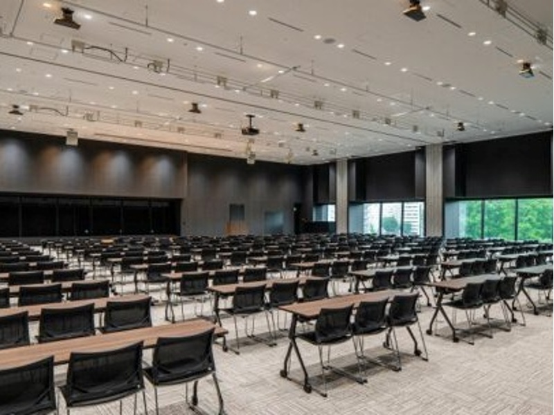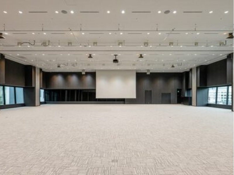 2024年4月1日にオープンしたばかりの「HALL」は、新宿駅新南口から徒歩4分という抜群のアクセスを誇るイベントホールです。新宿御苑に面した開放的な空間が最大の魅力で、広々とした727㎡のスペースは天井高6mと、大規模なイベントにも対応可能です。200㎡を超える専有ロビーも利用でき、受付や休憩スペースとしてもゆとりのある運用が叶います。セミナー向けの無料備品が多数用意されており、セッティング・撤去費用も無料。スタッフ常駐で、大型スクリーンも完備しているため、展示会や発表会、大規模な研修など、様々な用途で上質なイベント開催をサポートします。