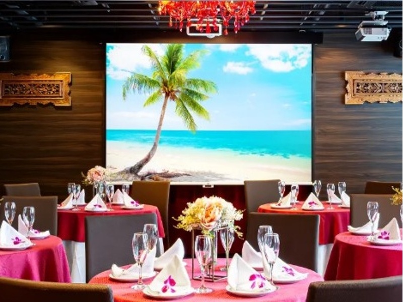 グレースバリ六本木店のアロナは、着席最大60名、立食最大80名まで対応可能な8階に位置する会場です。100インチスクリーン2台、80インチスクリーン3台の計5台ものプロジェクタースクリーンを完備しており、イベントやパーティーで大迫力の映像演出を実現します。お客様ご自身で注ぎたてのお酒を楽しめる生ビール、ハイボール、チューハイのサーバーも設置され、盛り上がりに貢献。最新の「ライブダムスタジアム」カラオケも完備し、エンターテイメント性も抜群です。プロ仕様の音響・照明設備に加え、ワイヤレスマイク、ホワイトボード、フリーWi-Fiなど、パーティーやセミナーに必要な多くの無料設備・備品が充実。自由なレイアウトで、企業宴会、同窓会、各種イベントなど、幅広い用途に最適な空間を提供します。充実した設備とサービスで、幹事様も参加者も心ゆくまで楽しめる特別な時間をお約束します。