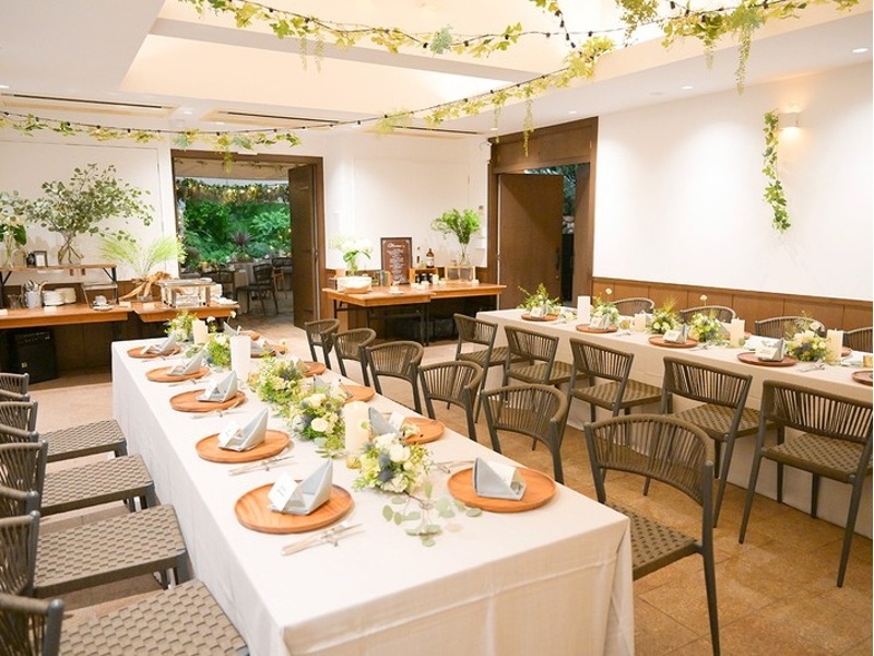 東京都心のオアシス、日比谷公園内に位置する開放的なパーティー会場です。美しい花と豊かな緑に囲まれたガーデンでのパーティーが実現し、テントの設置により天候に左右されず快適なひとときをお過ごしいただけます。最大立食50名、着席50名まで収容可能で、アットホームな雰囲気の中でゲストとの特別な時間を共有できます。都会の中心でありながら自然を感じられる唯一無二のロケーションで、忘れられないイベントや懇親会、カジュアルなウェディングなど、多彩なシーンにご利用いただけます。緑豊かな景色と共に、心に残るイベントを演出いたします。