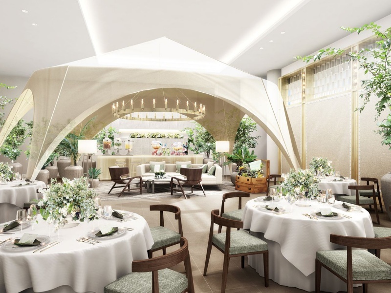「アット ザ バルコニー」は、グランピングをテーマにした開放的なパーティ会場です。まるで野外で楽しむBBQのようなカジュアルな雰囲気で、自由度の高いウエディングを実現できます。「ビール片手にBBQ!?」というコンセプトの通り、リラックスした楽しいひとときを過ごしたい方に最適。非日常感を味わえる空間で、記憶に残る特別な一日をお過ごしいただけます。