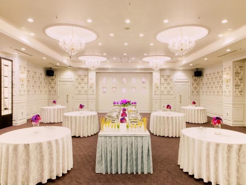 5階に位置する「ASAMA」は、スワロフスキーとシャンデリアが煌めく、大人の上品な雰囲気が魅力の会場です。ご宴会では着席120名、立食150名まで、会議ではスクール形式で112名、シアター形式で150名まで対応可能。プロジェクター、スクリーン、音響、カラオケといった充実した場内設備に加え、高速Wi-Fi(866Mbps)も完備しており、ビジネスからプライベートまで幅広い用途にご利用いただけます。特別なパーティーや重要な会議など、上質で洗練された空間で参加者に記憶に残るひとときを提供します。